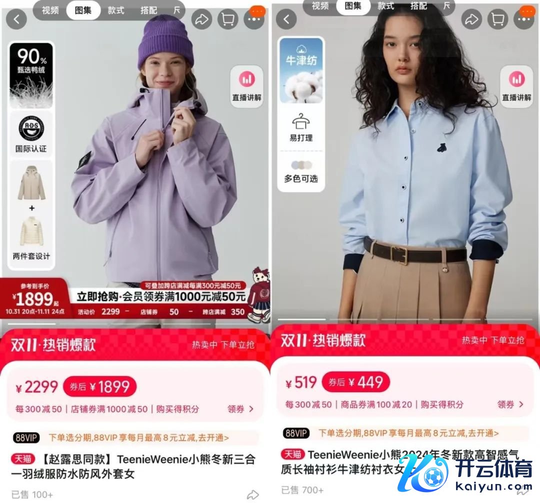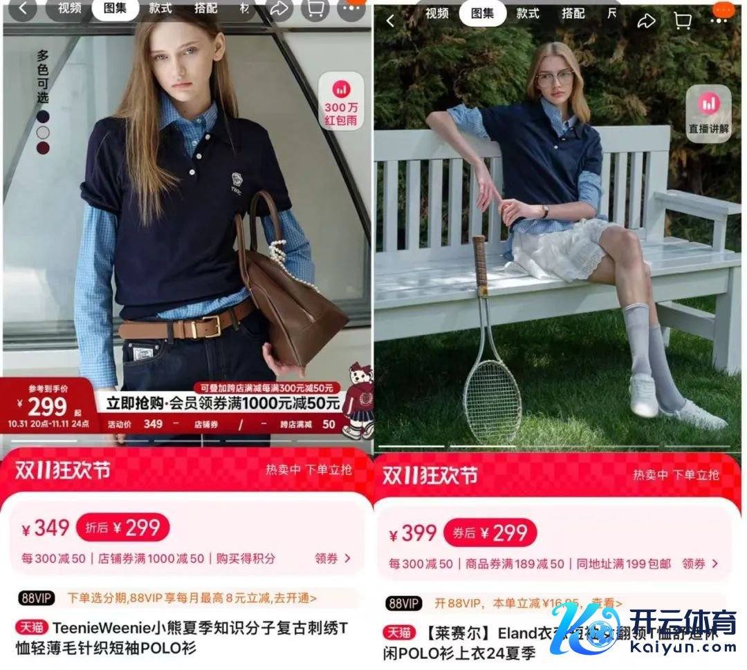 图源:左:天猫TeenieWeenie官方旗舰店 右:天猫ELAND官方旗舰店
