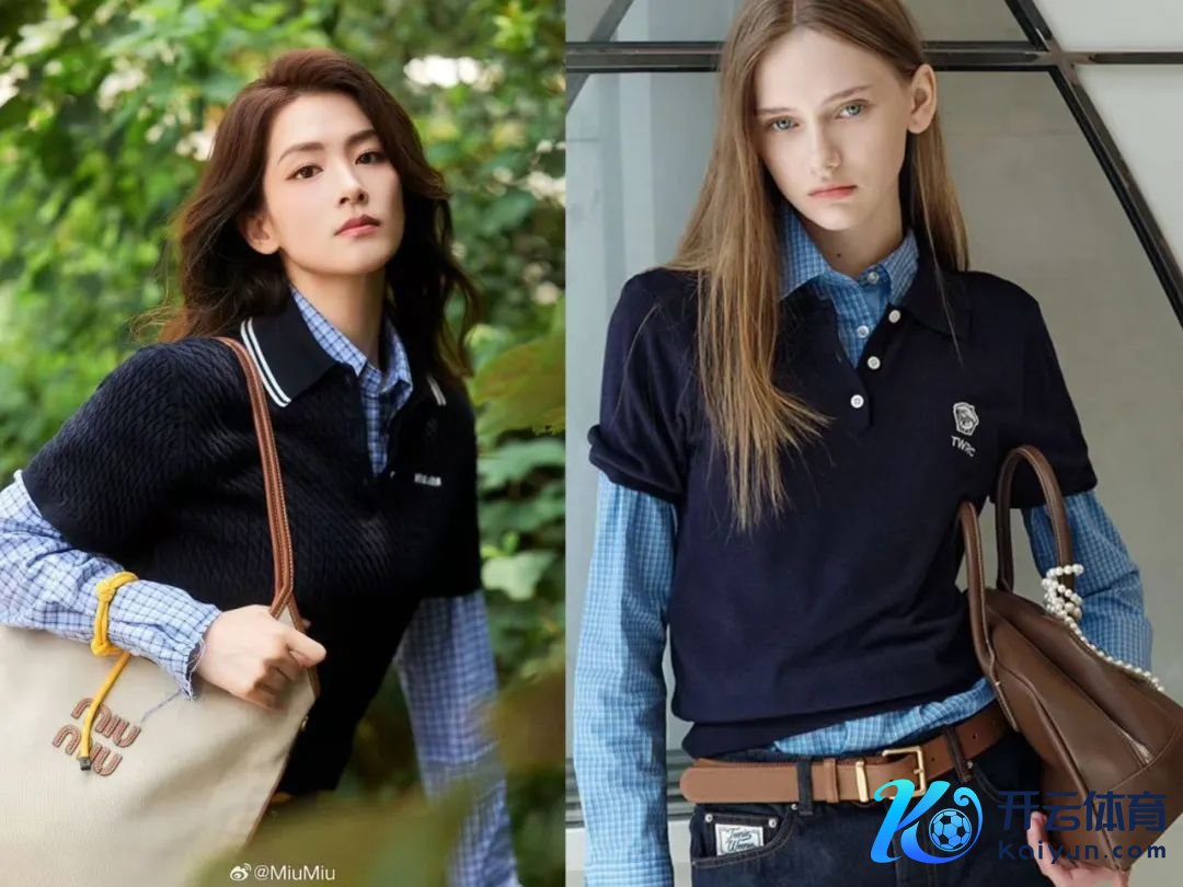 在其官方微博,本年秋季的几套look(穿搭),如藏蓝色诚笃开衫配牛仔衬衫灰色百褶裙、蓝色衬衫配卡其色老干部外衣卡其色百褶裙,再配上灰色袜子和猫跟凉鞋,跟Miu Miu如出一辙。