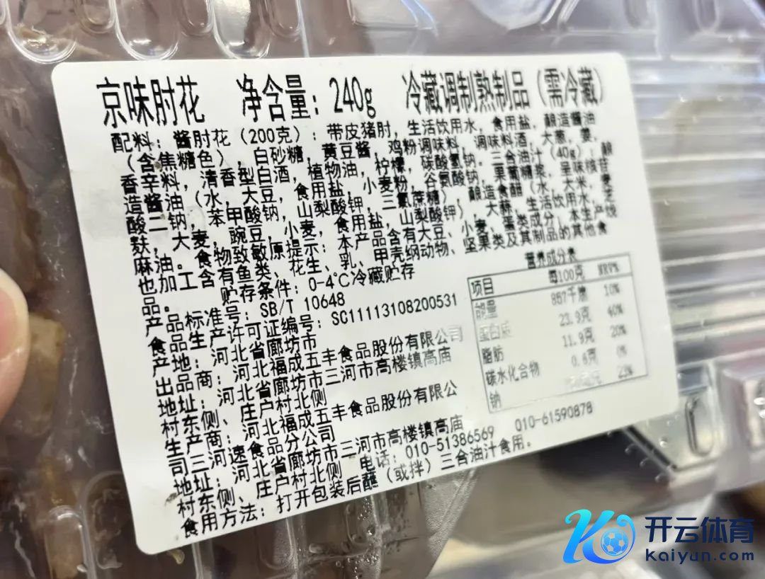 这家永辉超市的熟食区位于进口处,足可见其进击性。中国新闻周刊顺手提起一块用保鲜膜包裹好的猪头肉,上头的标签了了地记载了打印日历、单价、分量、储存条款,不外配料、分娩日历、开封日历、分娩地址、厂址等信息一齐写着“见及格证”。