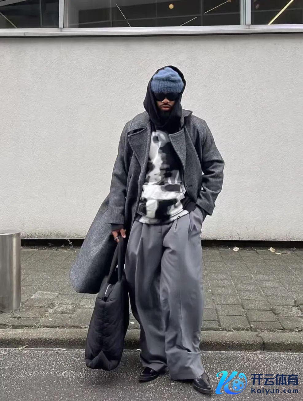 西村力聘用了一件玄色的连帽卫衣当作内搭,外面搭配了一件宽松的长款风衣,尽管合座以玄色为主,但通过不同材质和浅深的玄色单品,如连帽卫衣、风衣和裤子,创造出了丰富的视觉对比,幸免了单调,穿脱无包袱,让穿搭轻松应酬外界气温变化,合座造型既前锋又实用。