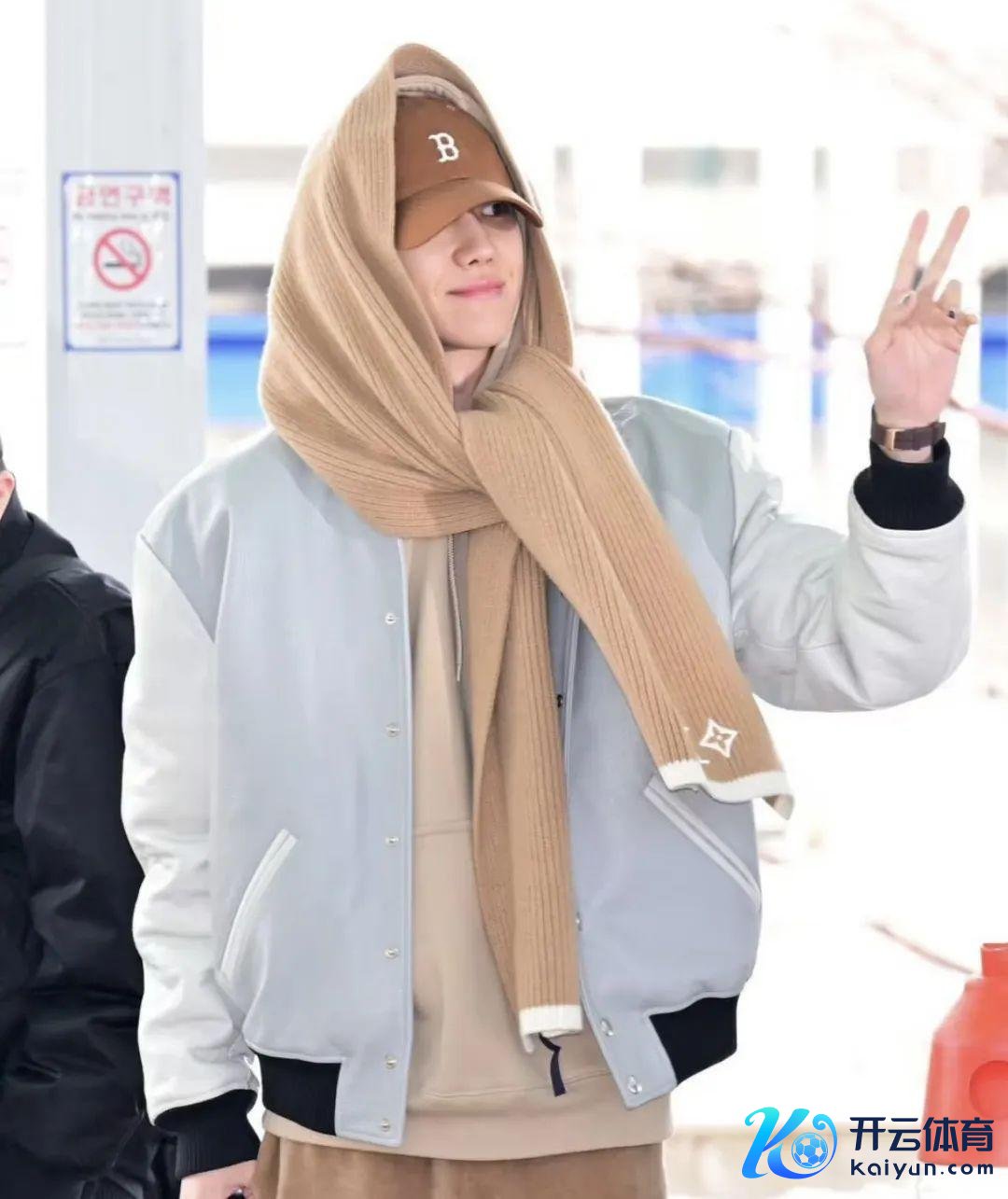 金珉奎的这身装饰检朴而不肤浅,合座以米棕色为主色调,搭配上一件天蓝色的棒球外衣,一条宽大的棕色套头领巾,为合座造型增添了丰富的端倪感。这种搭配既随心又充满细节,展现出不经意间的细巧感。