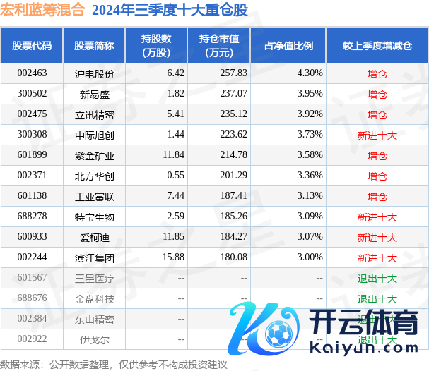 宏利蓝筹搀和为搀和型-偏股基金,字据最新一期基金季报泄漏,该基金钞票竖立:股票占净值比85.32%,无债券类钞票,现款占净值比29.88%。基金十大重仓股如下: