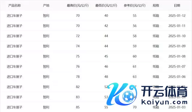相关数据清晰,2025年1月3日—12日,智利入口车厘子的价钱握住下滑,参考价从1月3日的每公斤70元下滑到1月12日的每公斤55元,比拟一个月前下滑过半。数据清晰,前年1月3日参考价钱为每公斤109元,前年1月12日参考价钱为每公斤79元。