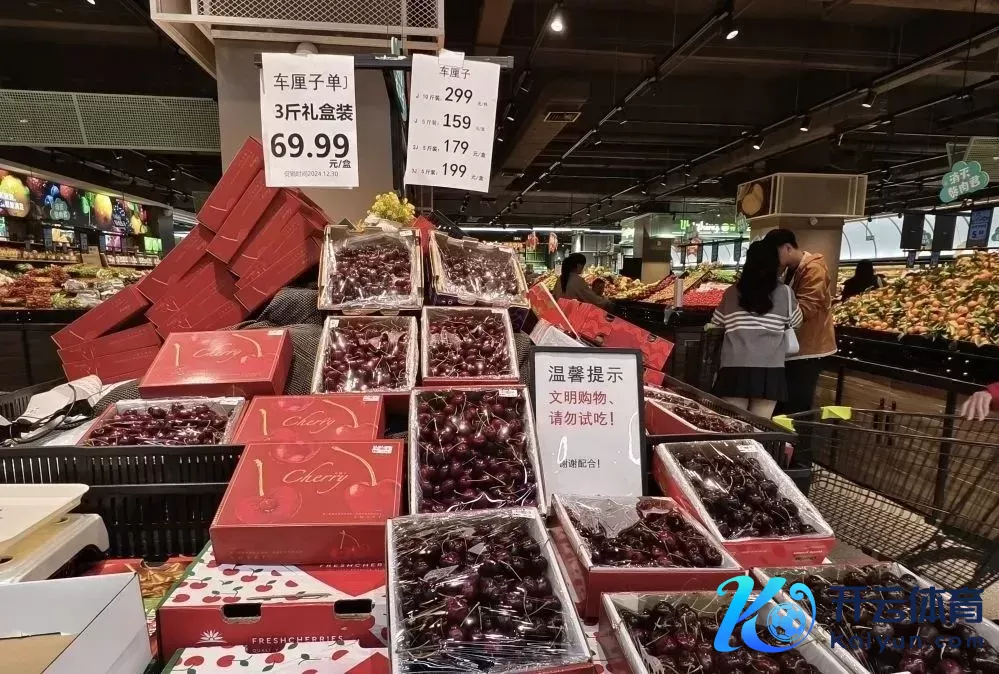 超市的车厘子销售区价钱牌非常能干。