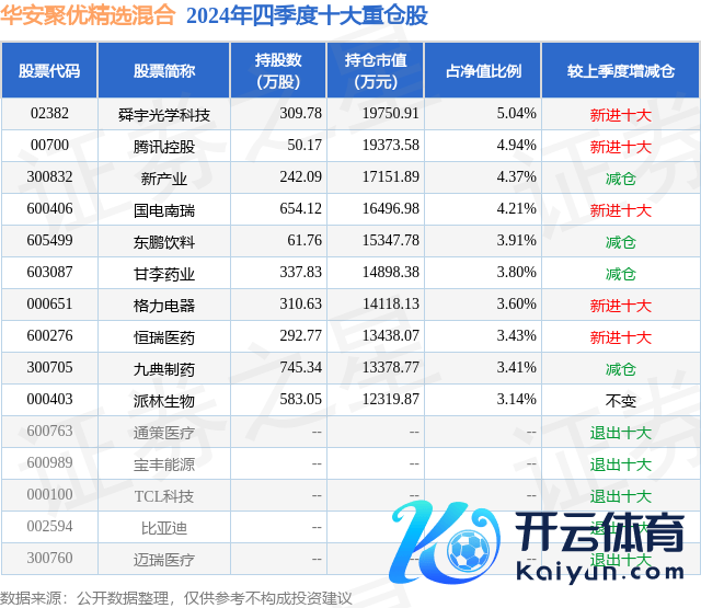华安聚优精选混杂为混杂型-偏股基金,凭据最新一期基金季报露出,该基金金钱树立:股票占净值比87.32%,无债券类金钱,现款占净值比13.89%。基金十大重仓股如下: